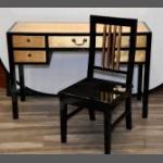 A hand made desk and chair with a lacquer and gold leaf style finish Origin Shanghai Circa 1990 Condition Good. H: 79cm W: 122cm D: 45cm