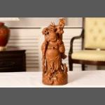 A Buddha which has been wonderfully carved from once piece of sandalwood. Origin Zhejiang Province Circa 1990s Condition very good.. H: 48cm W: 19cm D: 9cm