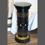 A solid black marble plinth with brass detail fittings. Very highly polished and in excellent condition. Very heavy piece due to the solid marble. Origin Dalian.. H: 101cm W: 43cm D: 43cm