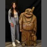 A large very heavy wood carving of a Buddha standing approximately 5ft tall. Origin Thailand Circa 1980 Condition Good. H: 152cm W: 75cm D: 63cm