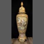 A unique large 1.9 metre porcelain temple jar with hand painted scenes. Origin Chaozhou Guangdong Province Circa 1980 Condition good. H: 196cm W: 55cm D: 56cm