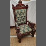 A hand made solid mahogany King's chair standing almost 6ft high. Hand carved detail throughout. . H: 174cm W: 96cm D: 80cm