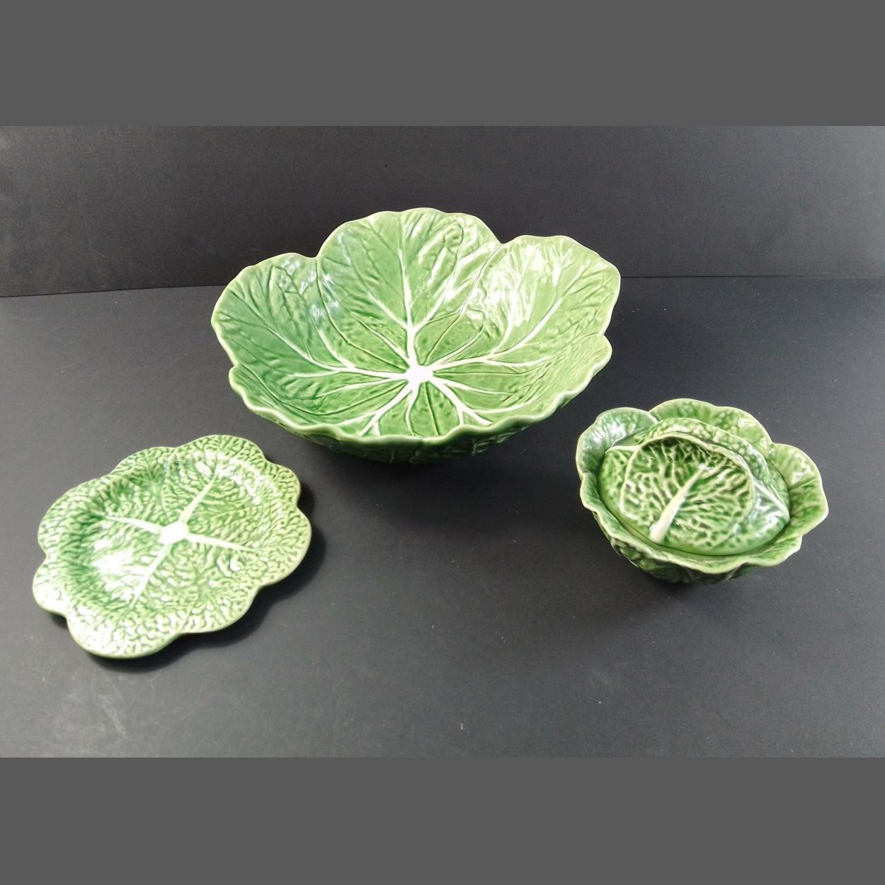 PORTUGAL. Three lovely ceramic pieces comprising 28cm fruit bowl, lidded preserve pot and small tray. All in good condition, attractive and useable