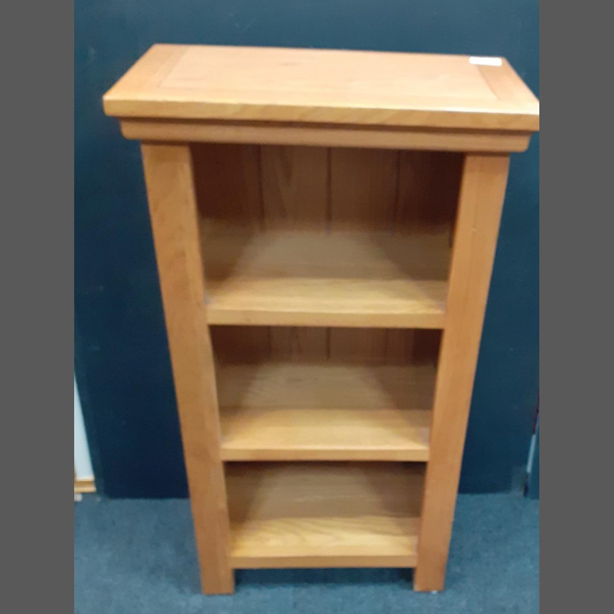 A modern good quality solid oak floor standing bookcase - dimensions height 80cm x depth 25cm x width 45cm approx