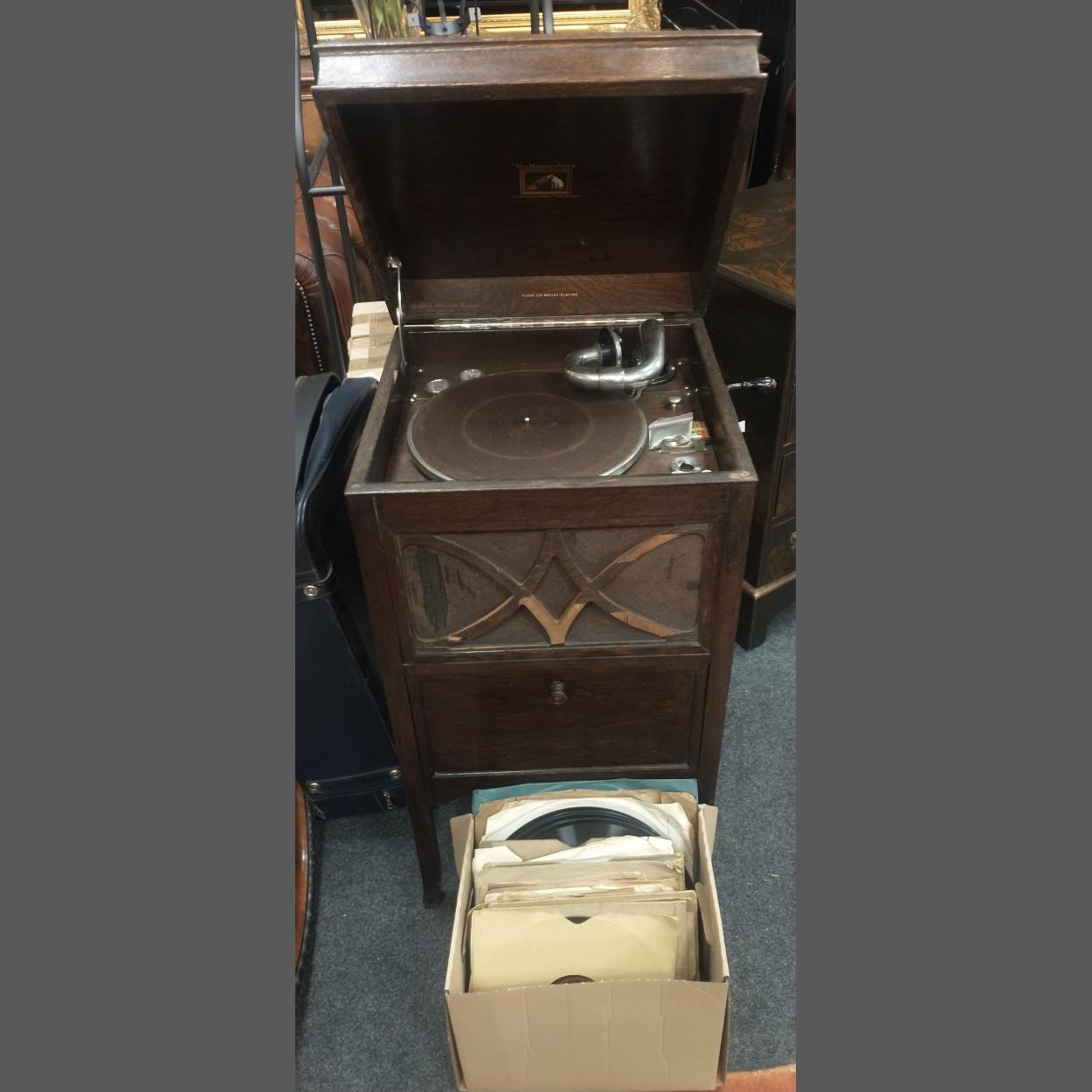 HIS MASTERS VOICE gramophone ltd purchased from 83 Princes St Edinburgh Methuen Ltd - still in working order! - complete with a box of FULL of shellac 78' records
