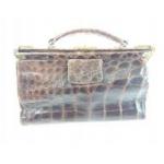 A VINTAGE CROCODILE handbag with a nice worn patina - dimensions 28cm wide x 17cm height approx