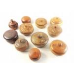 A lovely collection of 11 wooden trinket boxes, many carved. Largest approx 10cm diameter.
