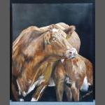 How now brown cow - A super large canvas of mother and calf by ROSEMARY PARK 120x100cm