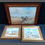 Three VINTAGE artworks to include 2 bird pictures and a countryside scene