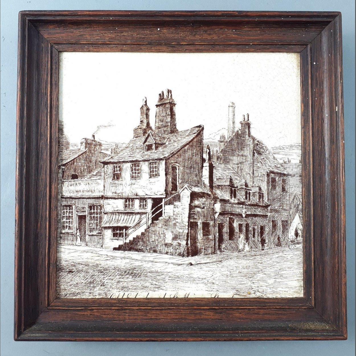 A sepia framed MINTON tile in good order in a wooden frame, 18.5x18.5cm approx