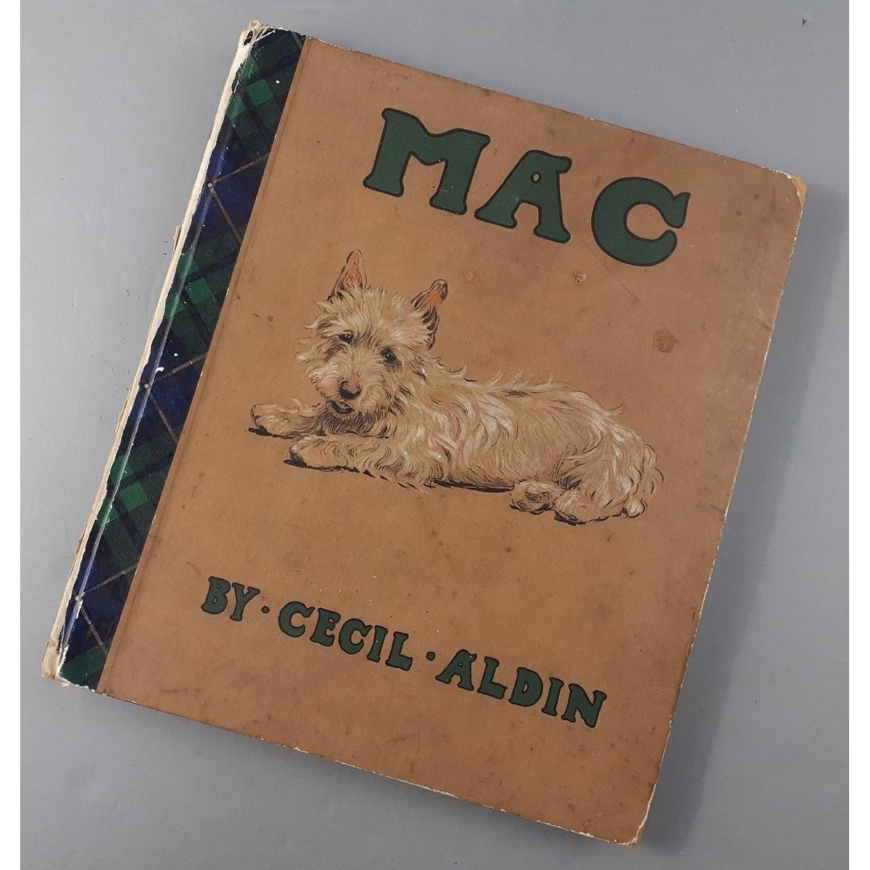 A RARE BOOK published in Scots - MAC by CECIL ALDIN, published by Hodder & Stoughton, no pagination, presumed first edition published in 1912 with 24 coloured plates. Hardback with no jacket. Foxing to a couple of pages, tartan binding on spine cracked and rubbing to corners.