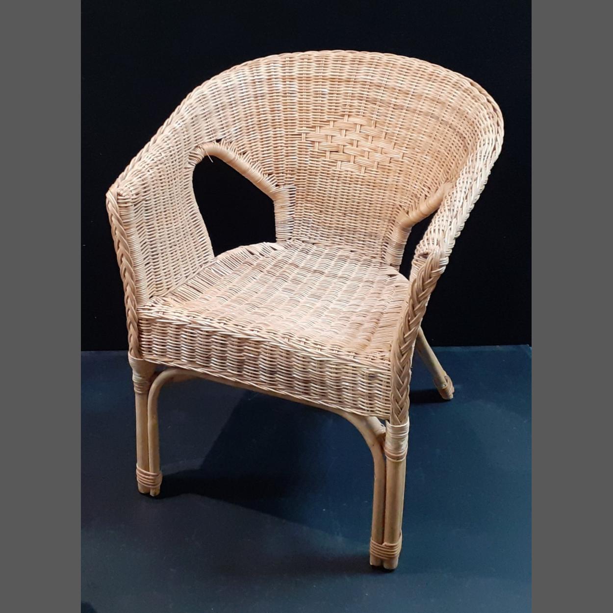 A wicker chair in good condition. Nice useable item. Stands 70cm tall and 40cm to the seat.
