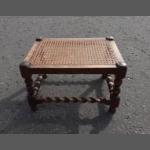 A traditional woven top footstool with barleytwist stretchers, H27xW45xD33cm approx. A few broken strands but overall nice condition