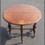 An attractive wooden drop leaf table on original castors with decorated legs. Measurements folded W89xH73cm, when open 108cm dia. approx