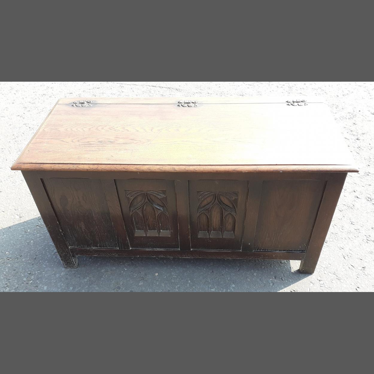 A wooden chest with arch shaped carved panels, measures W113xD45xH45cm approx