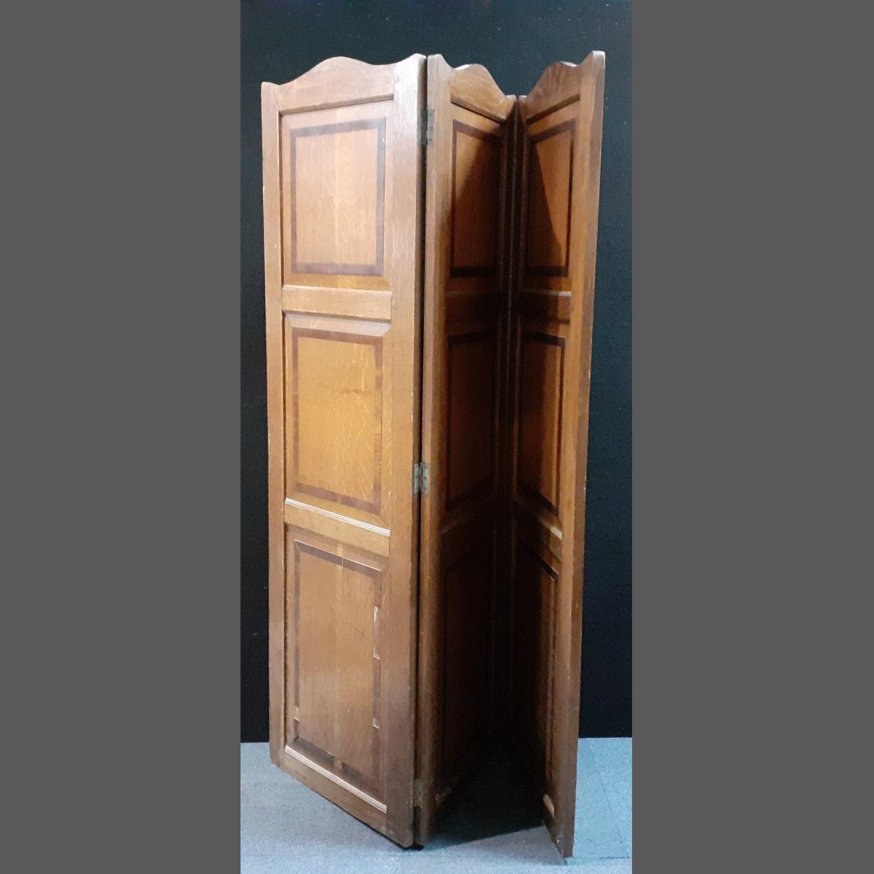 SOLID OAK antique period tri- fold oak screen in nice condition. 173cm tall and total width with each panel 51cm width approx