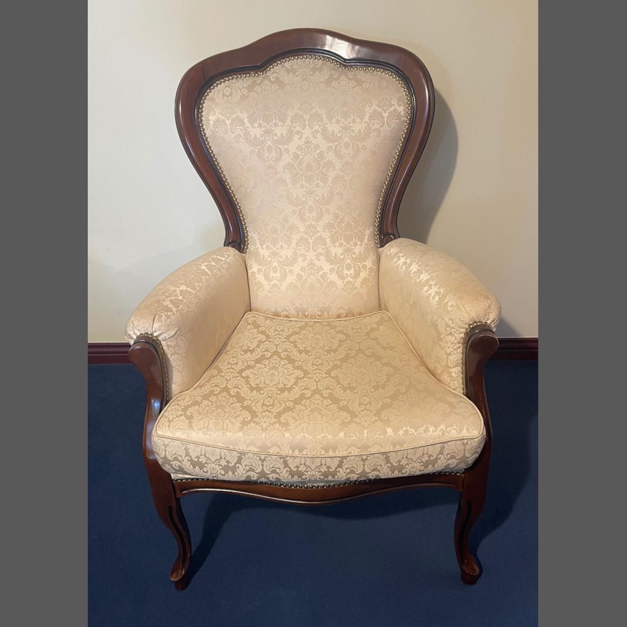 LOVELY QUALITY! A nice silk patterned upholstery armchair 100cm to top of back, 40cm to the seat