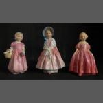 Three pretty ladies in pink from ROYAL DOULTON to include Lily (HN1798), Tinkle Bell (HN1677), Marie (HN1417). No damage