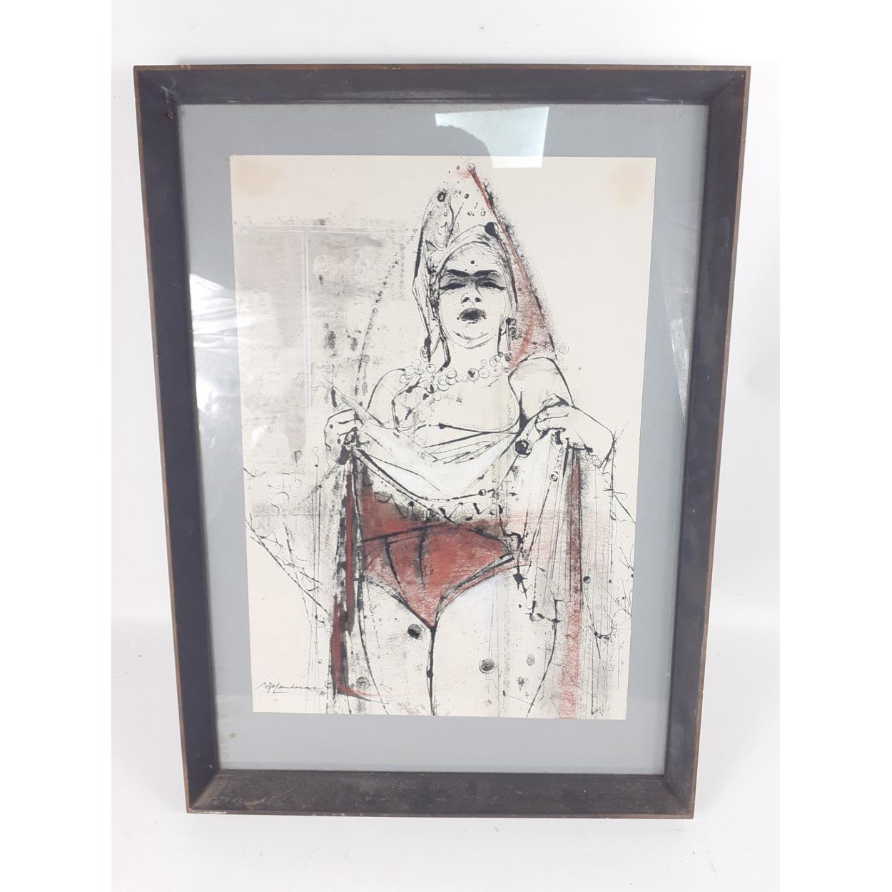 A Nigel Lambourne ORIGINAL Indian Ink, pastel and watercolour titled 'Entertainer' dimensions 520mm x 365mm signed ' Nigel L:ambourne 74'. Good condition , glass intact.