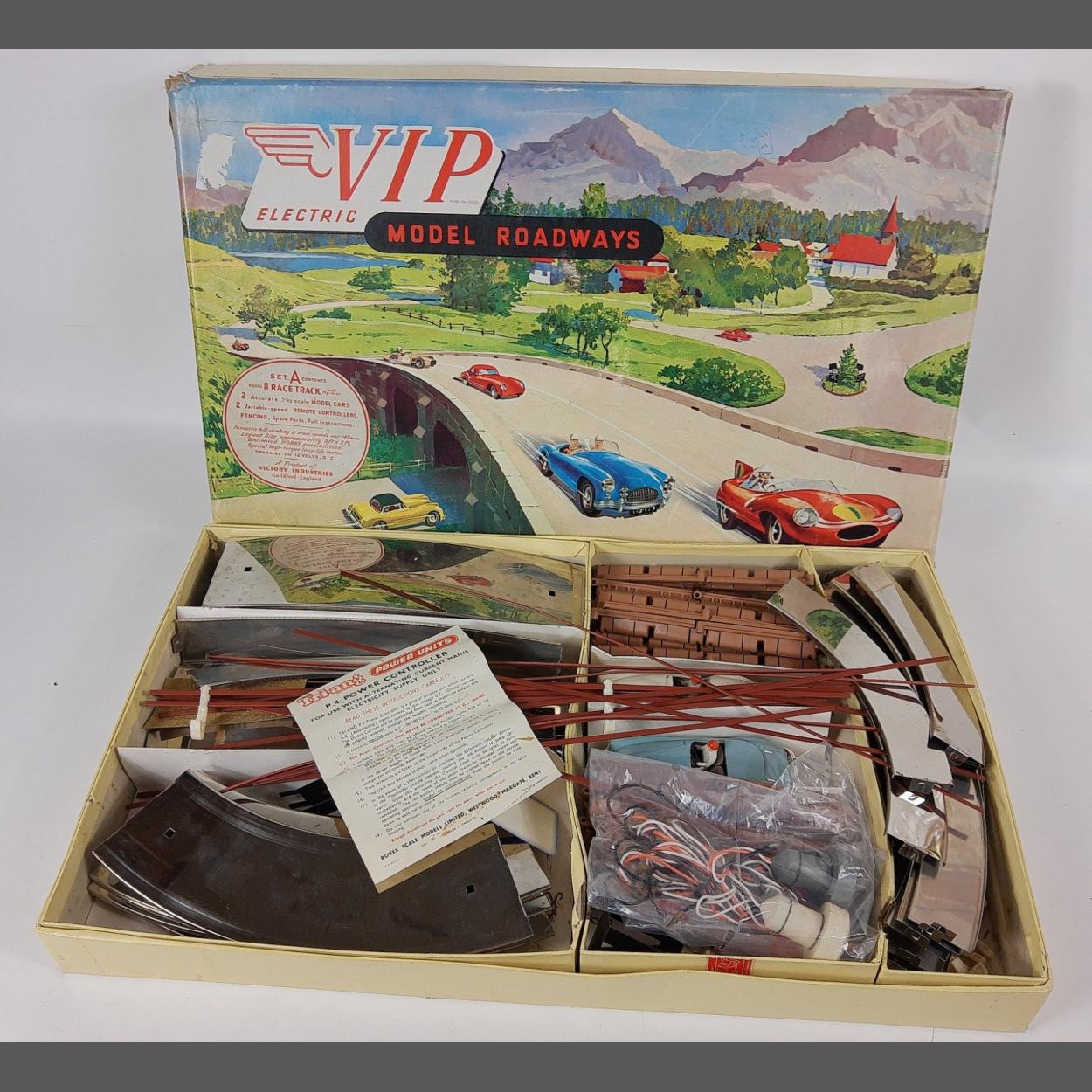 Rare to find - a VIP ELECTRIC MODEL ROADWAY Set A with a figure 8 race track with flyover, with two cars and their drivers