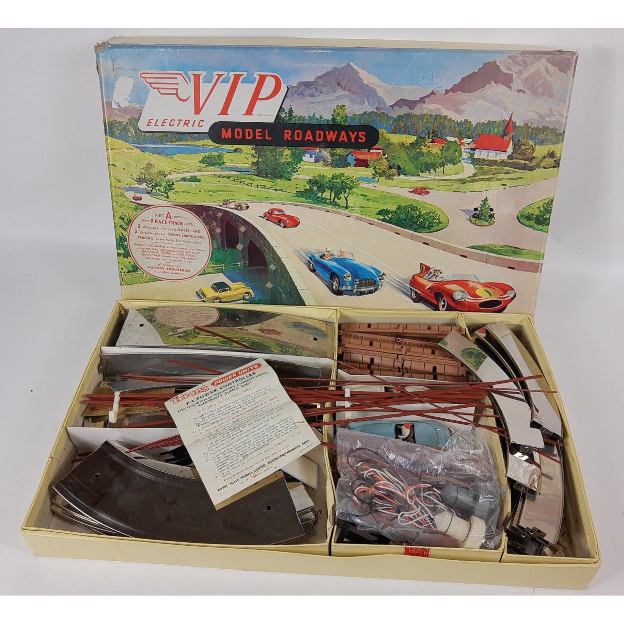 Rare to find - a VIP ELECTRIC MODEL ROADWAY Set A with a figure 8 race track with flyover, with two cars and their drivers