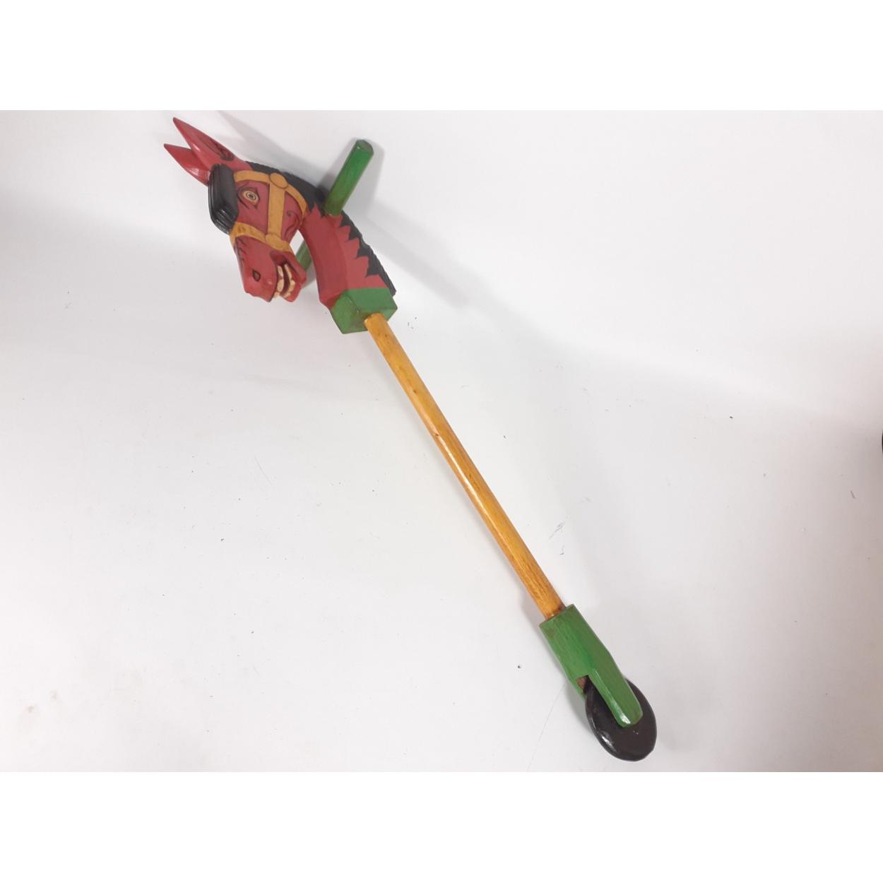 A wooden toy chest 70x36x30cm approx full of all the wee Playmobil bits that usually get lost or eaten by the dog including a PLAYMOBIL fire engine, a plastic box full of various headgear, a box with a wide selection of killing implements including knives, spears, rifles etc, lots of different characters, a trebuchet, scenery and a whole lot more