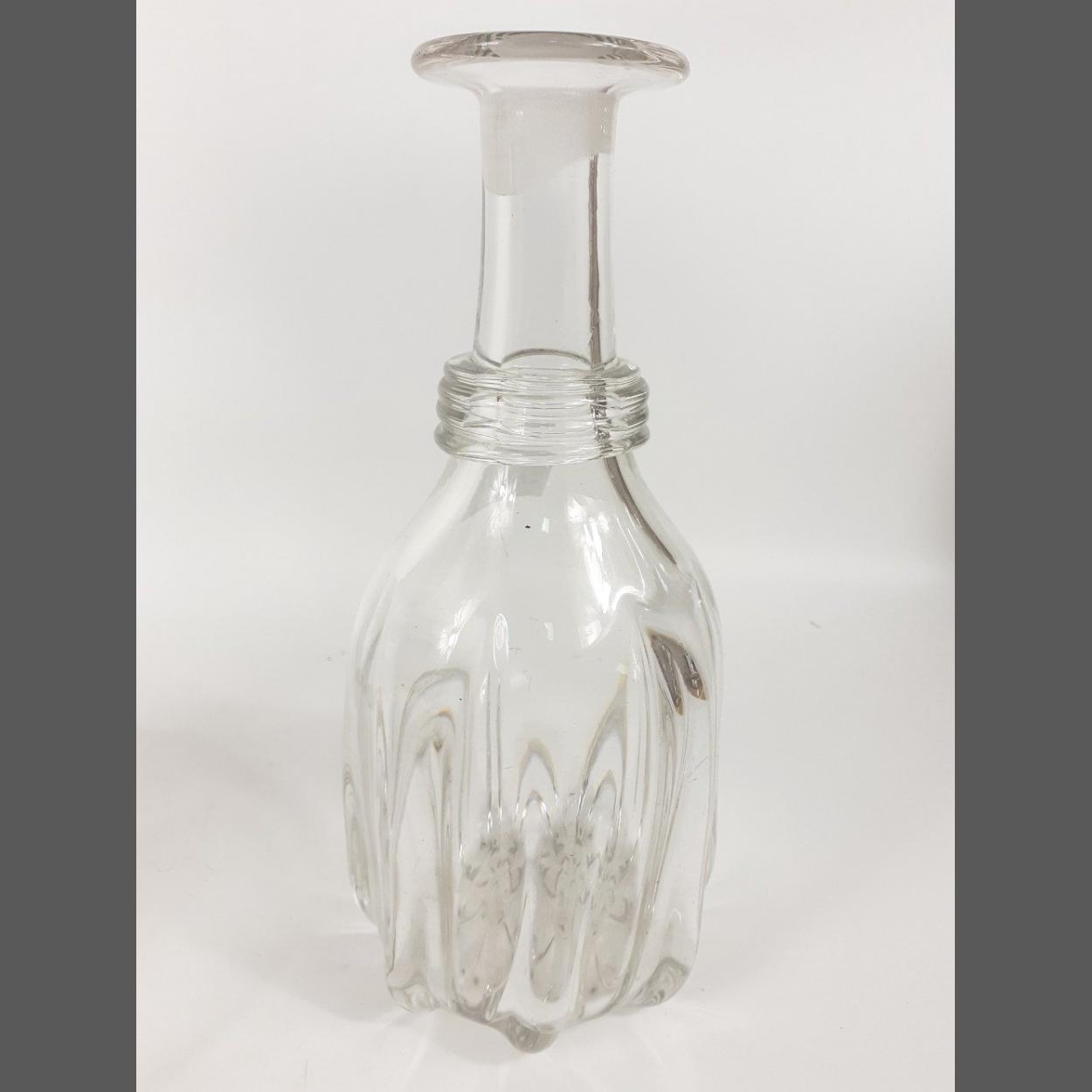 A STUNNING glass lamp and cover with plug 30.7cm high along with a glass decanter 26cm high. Condition - All in good condition. slight staining on glass cover.