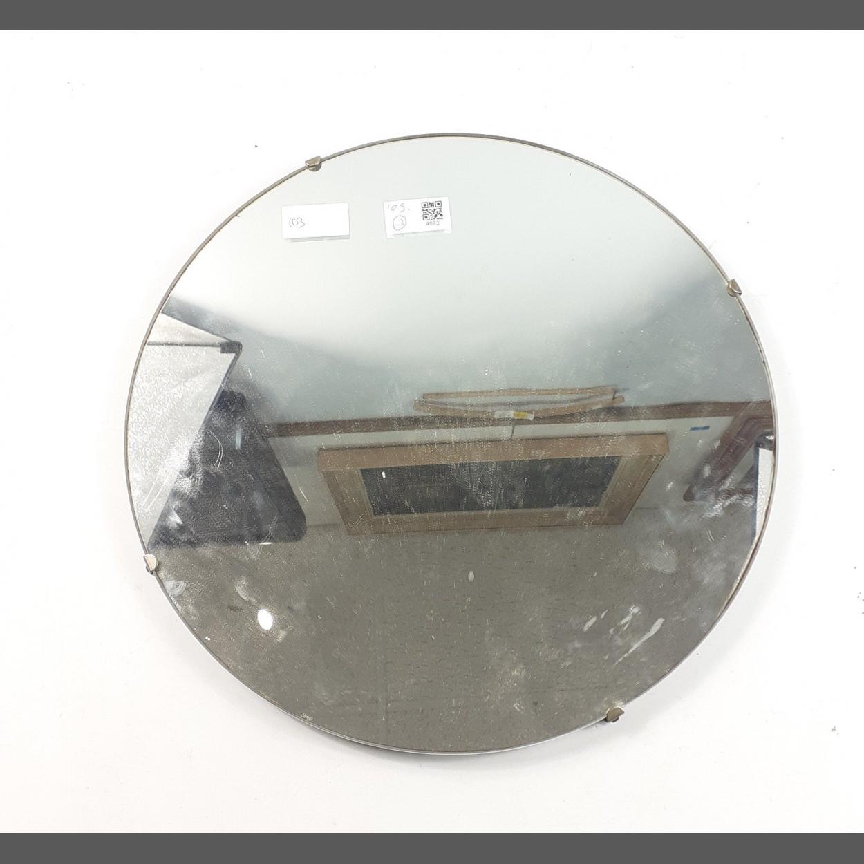 A DECORATIVE VINTAGE round wall mirror complete with attached wall hanging ring. Dimensions - 35.5cm, good condition.