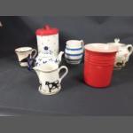 A large collection of kitchen ware to include a Le Creuset utensil jar, PRICE KENSINGTON teapot plus a CORNISH WARE jug and others