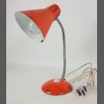 A VIBRANT, RETRO, posable desk lamp complete with plug in an eyecatching orange colour. Dimensions - 40cm high when fully posed. Good condition.