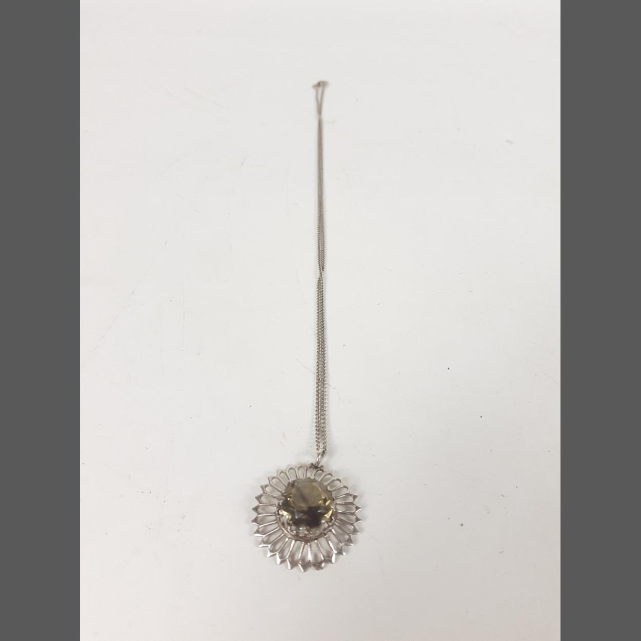 A 925 stamped chain 52cm long approx with a white metal pendant 3cm long with citrine