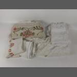Box of lovely quality linen to include embroidered linen, antique fantastic white table linen etc