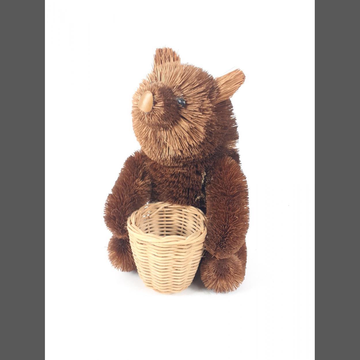 An unusual bristly bear with small basket sitting approx 32cm high