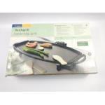 An efficient way to cook dinner on this table-top grill from Tchibo, never been used, adjustable temperature from 116 - 250C, 1800 watts measures 48x8x29cm