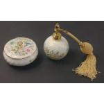 AYNSLEY perfume atomiser 12.5cm height WILD TUDOR pattern with a matching lidded trinket dish 9cm diameter approx