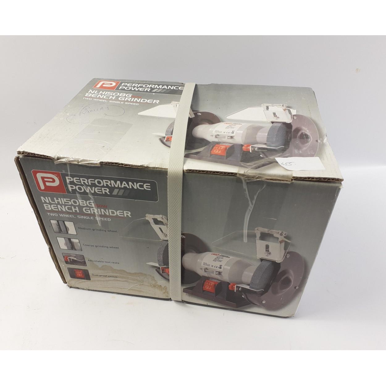 A boxed PERFORMANCE POWER NLH150BG Bench Grinder.