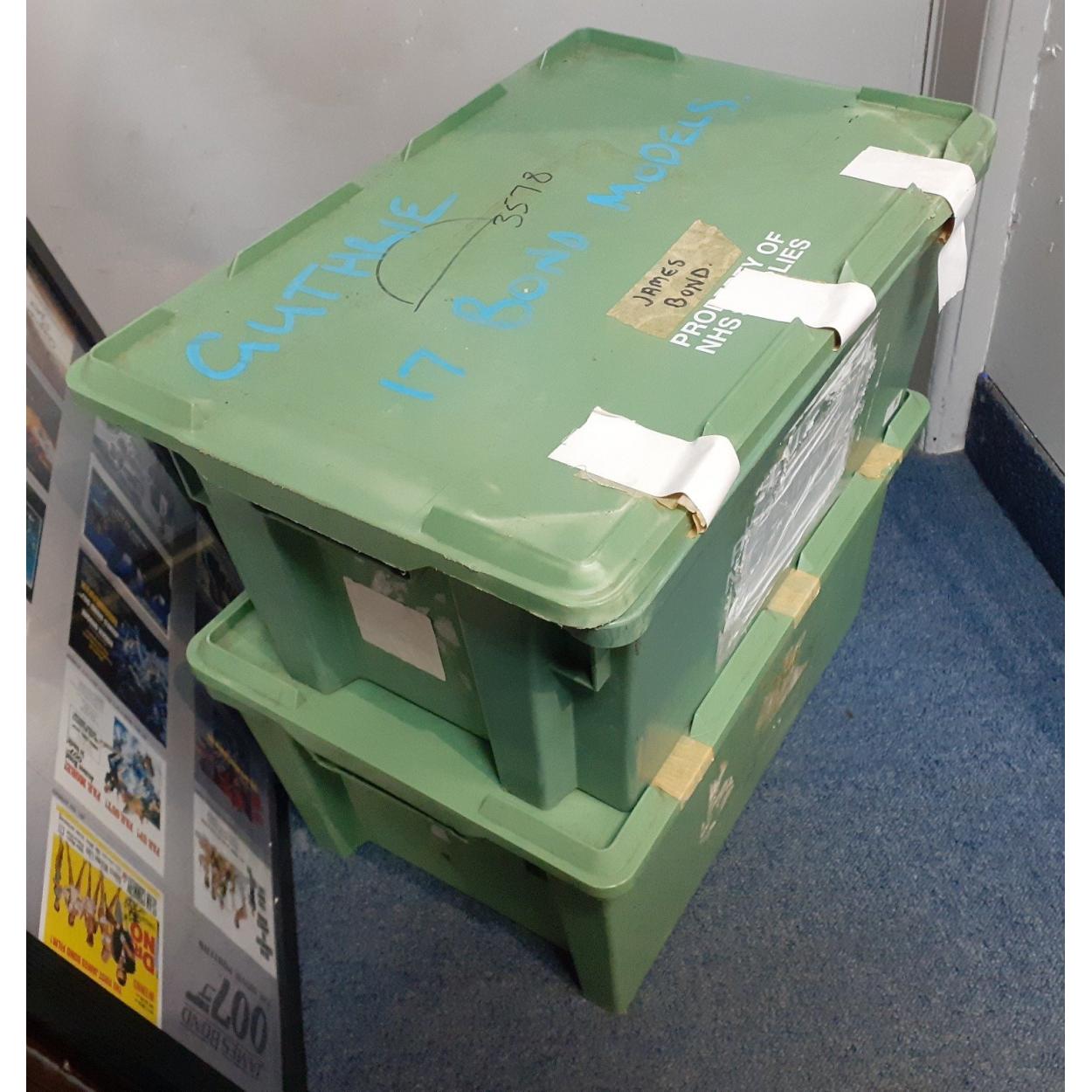 Two robust lidded plastic storage containers 60x40x30cm plus 1 clear plastic further storage box (no lid) 60x40x18cm