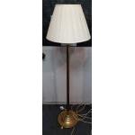 A large floor lamp in wood with brass fittings and a cream shade. 155cm high approx.