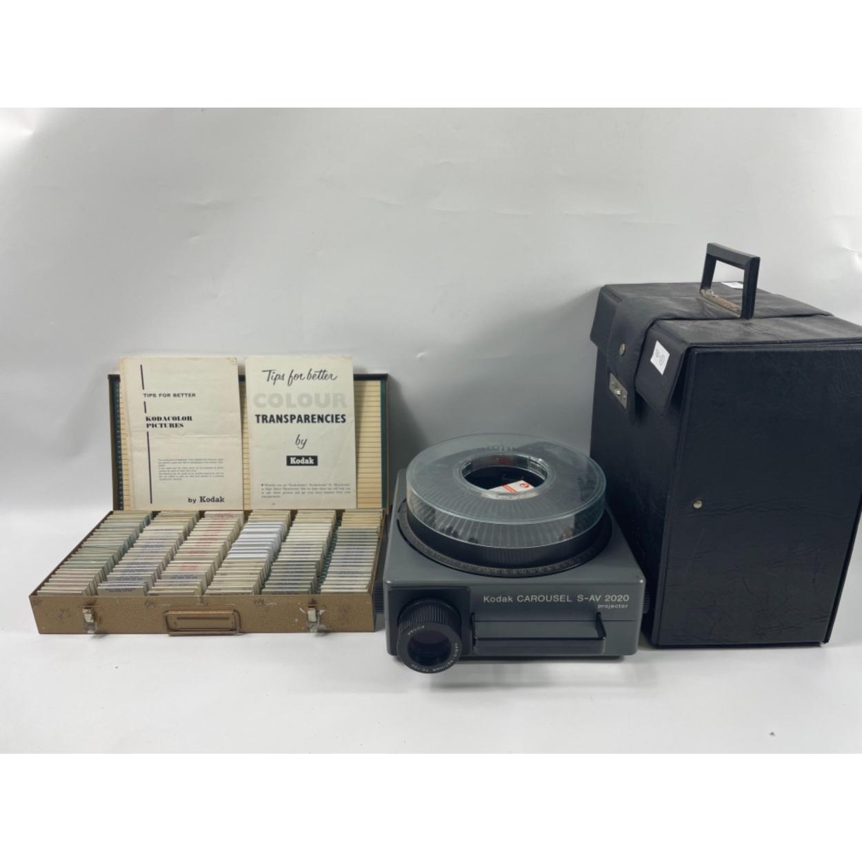 Remember the old school slide shows? - a KODAK CAROUSEL S-AV 2020 projector with a vario-retinar 70-120 lens (in its carrying case) comes with a fascinating collection of slides, some dating from 1960, from Pompeii, Venice, Vienna, Oberammagau, the Cheddar Gorge and many more