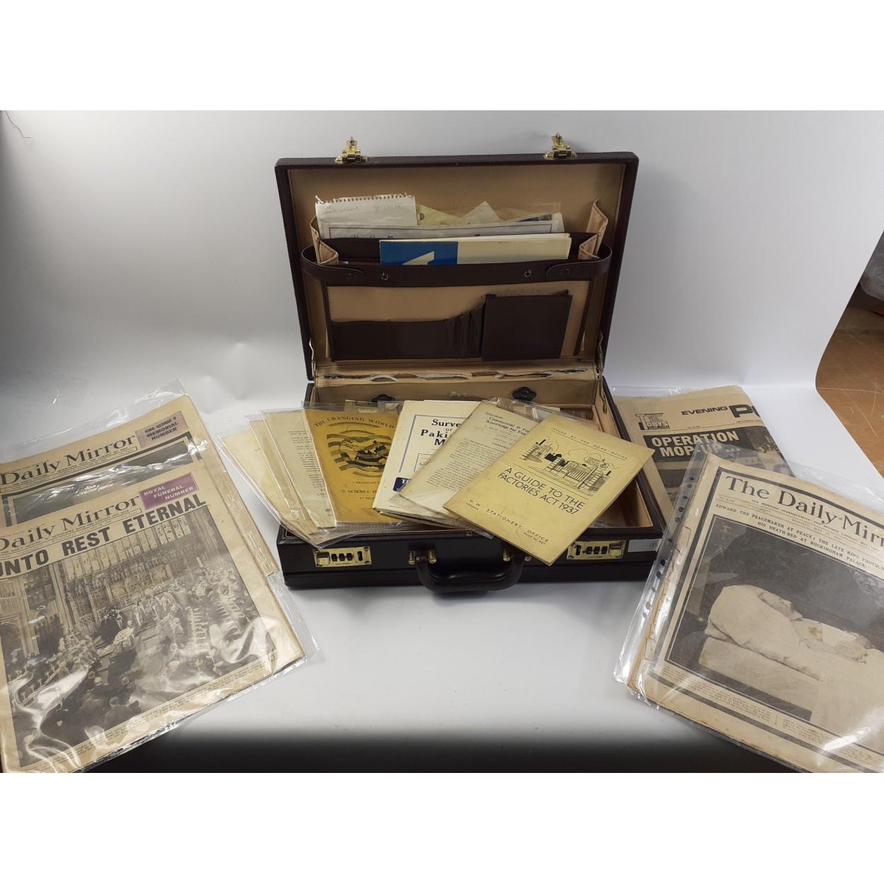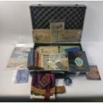A box containing quality graduation gown (length approx 115cm), mortar board and academic hood. The hood apparently relates to M. Litt for Oxford or Trinity Dublin. All in good order.