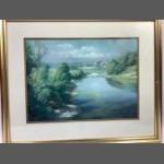 An original water colour in gilt frame of PEEBLES TWEED GREEN by Jim Williams and dated 1999 on the rear. A pleasant picture well executed. Frame size 40 x 30cm.