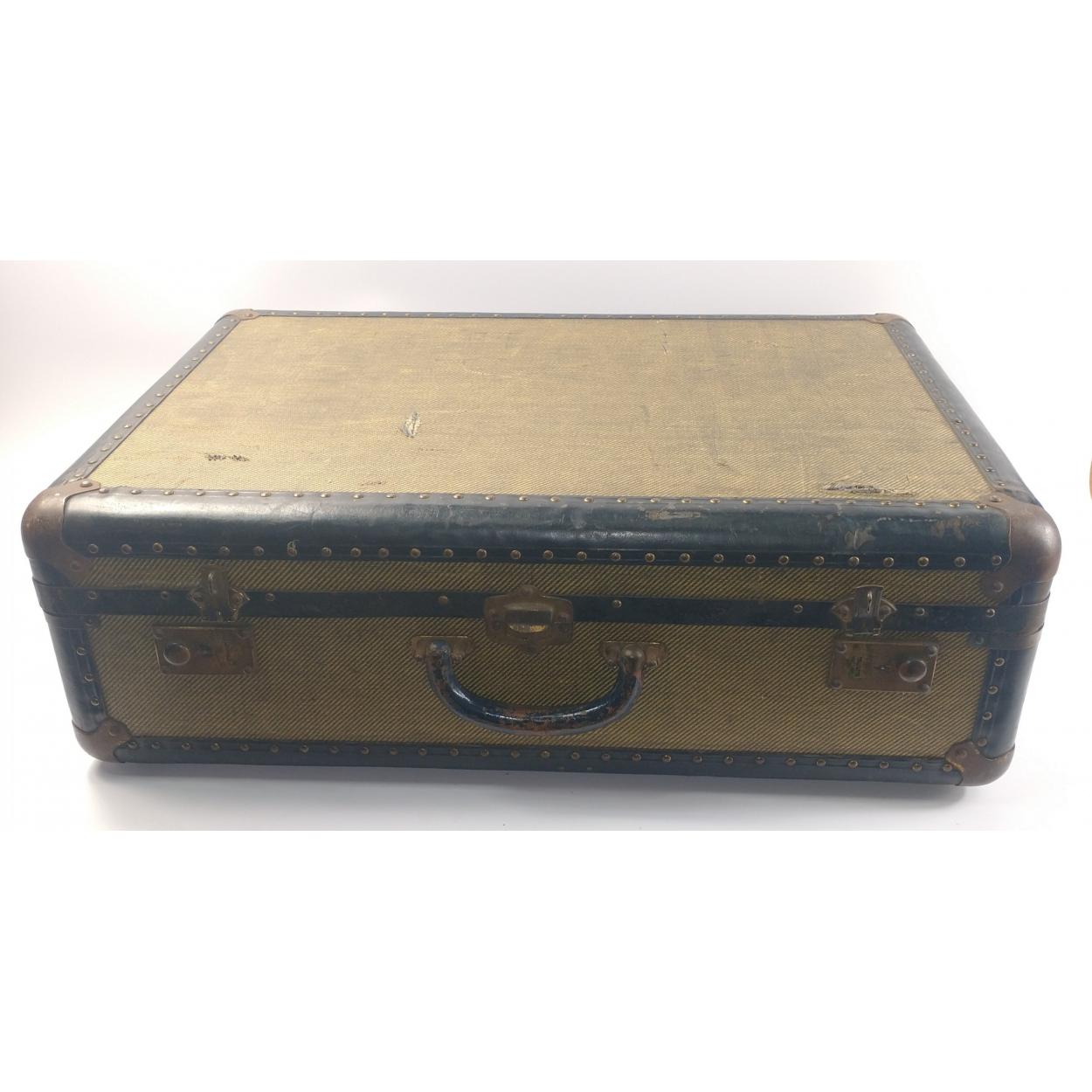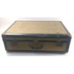 A super old suitcase with a stripey silk interior. A little battered but a solid and useable piece. 66 x 45 x 22cm approx. No keys.