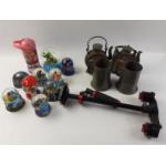 A mixed lot of bric-a-brac to include a boxed Sony Walkman tape player, two brass jam thermometers, a small vintage desk calendar, an inkwell, a British Linen Bank savings bank in original box, a vintage SMAKBAK golf practice set, a Royal Worcester boxed pie funnel and other assorted items.