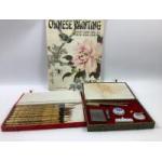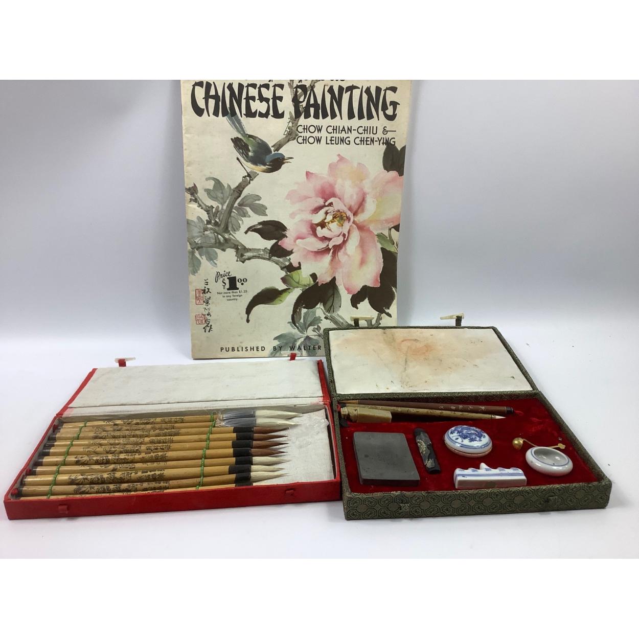 Explore a new hobby with this lot consisting of a Chinese calligraphy set, a set of Chinese paint brushes, and a handy guide to Chinese painting by Chow Chian-Chiu & Chow Leung Chen-Ying