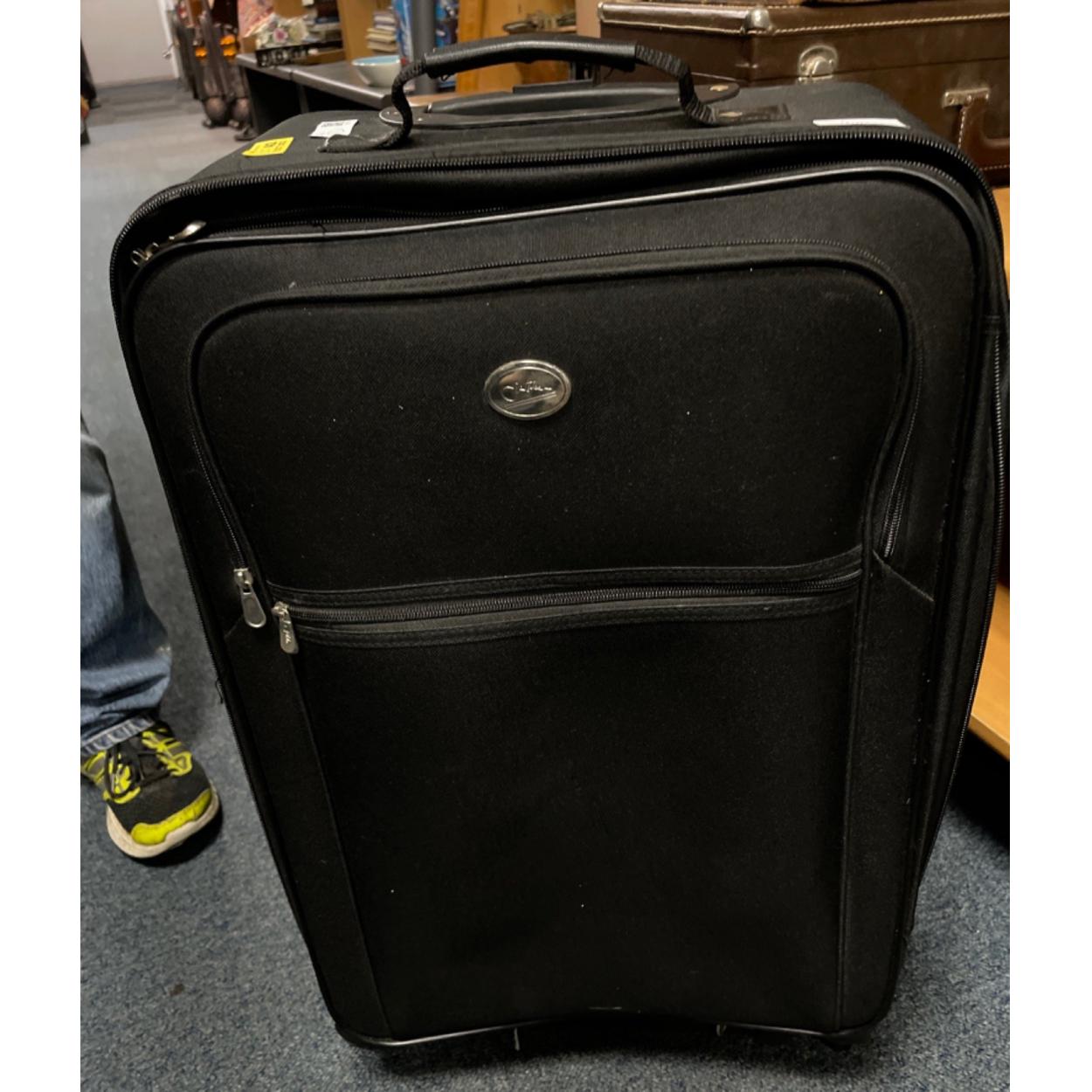 A large expanding travel suitcase on castors with extendable handle in black - height 64cm x width 40cm x depth 23cm