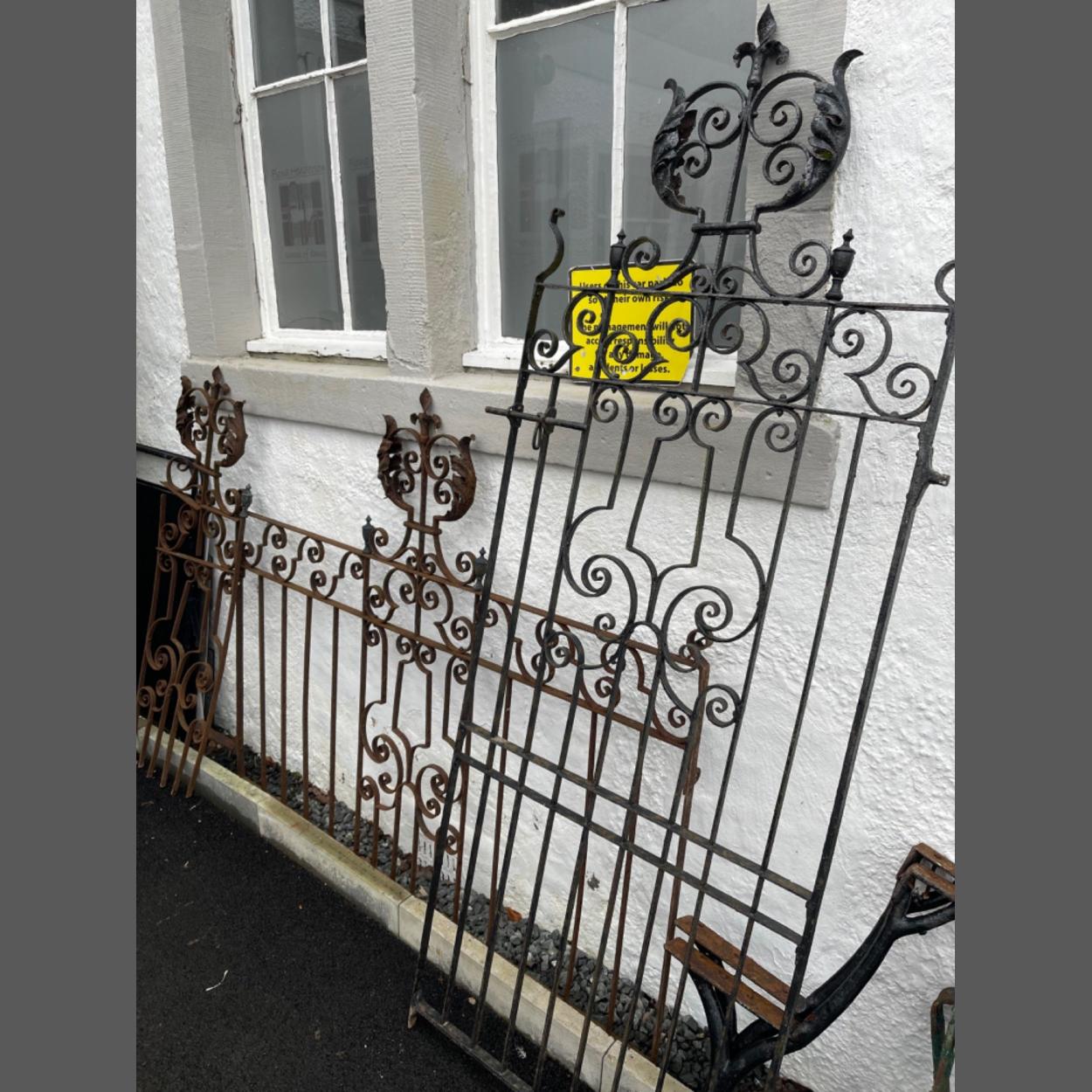 A 3 piece cast iron set of gates approx 7-8 feet in width - each piece with an unusual finial - these gates are really old - came from a Scottish Borders estate - what are the possibilities - 3 pieces 4ft, 3ft and 1ft width