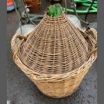 An large antique wicker basket covered green bottle standing approx 2feet high, 14" dia.