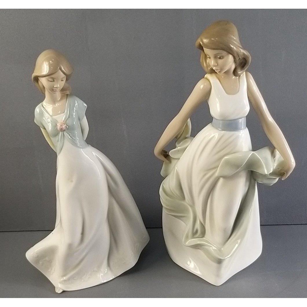 Two NAO ladies 'Walking on Air' (1343) standing 28cm tall and 'Truly in Love' (1450) standing 26cm tall approx. Both are damage free and come with their original boxes.