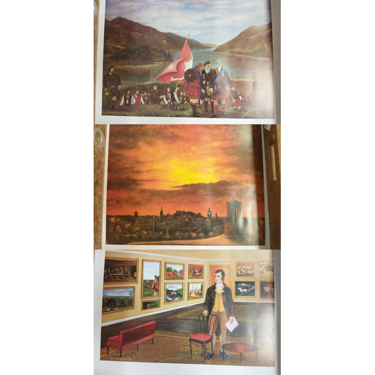 A collection of Scottish themed unframed prints to include 2 copies of Rabbie Burns by JOHN MACKAY WILLIAMSON (62x43cm approx), Bonnie Prince Charlie, plus some duplicated and three smaller ones of Calton Hill