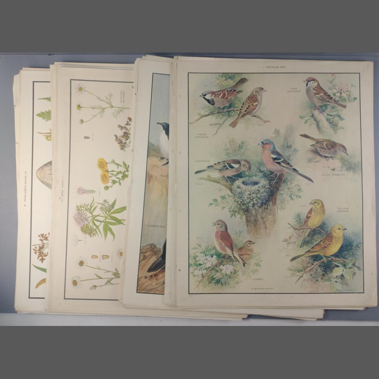 A super collection of around fifty vintage school teaching information posters numbered 1-62 with only a few missing. Includes Birds, Flowers, Butterflies, Animals, Insects, Trees etc. Many have been pinned but all in nice clean condition. Each 54cm x 44cm approx.